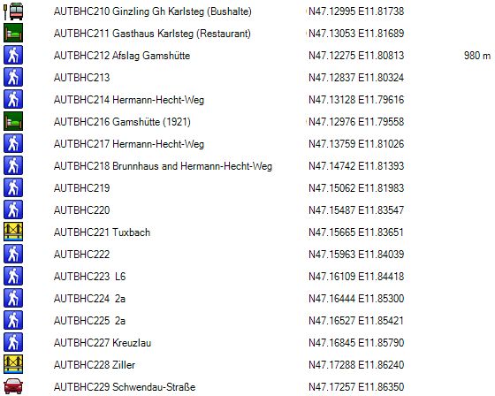 Ik ben dan afgedaald via de brede weg richting Penkenalm (AUTBHC316), waar je een open zetellift vindt tot aan Bergrast. Opnieuw ben ik te voet afgedaald tot aan een splitsing (AUTBHC318), waar je naar rechts terug gaat naar het Penkenhaus en links naar het tussenstation van de kabelbaan naar Mayrhofen loopt. Hier kan je met een gesloten gondel afdalen tot Mayrhofen (Penkenbahn). Als je te voet wilt afdalen, volg je de weg nog iet verder tot aan het basisstation van alweer een skilift (AUTBHC320) en hier vind je eindelijk weer een echt bergpad naar beneden. Op een bepaald ogenblik (AUTBHC307) zal je terug samen komen met het pad dat je naar omhoog volgde en hier daal je terug af langs dezelfde weg tot Mayrhofen en Laubichl.