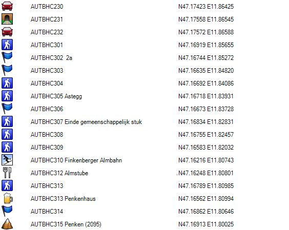 Bijna boven, kom je op een verharde weg (AUTBHC306) die noch licht stijgt, om dan af te dalen naar het dal. Het Penkenjochhaus staan aangeduid naar links, maar dan loop je gewoon via Astegg (een zaak waar je iets kan gebruiken.), om vervolgens via een pad naar de verharde weg geleid te worden. Ikzelf ben naar rechts gegaan en heb vervolgens onmiddellijk de verharde weg omhoog genomen naar GPS AUTBHC307 en AUTBHC310. Je volgt de weg verder omhoog tot je een afslag vindt naar het Penkenhaus. Vanaf hier begint er weer een echt bergpad tot aan het Penkenhaus (AUTBHC313). Hier vind je nog een echte berghut, maar hogerop is enkel koning ski nog heer en meester.