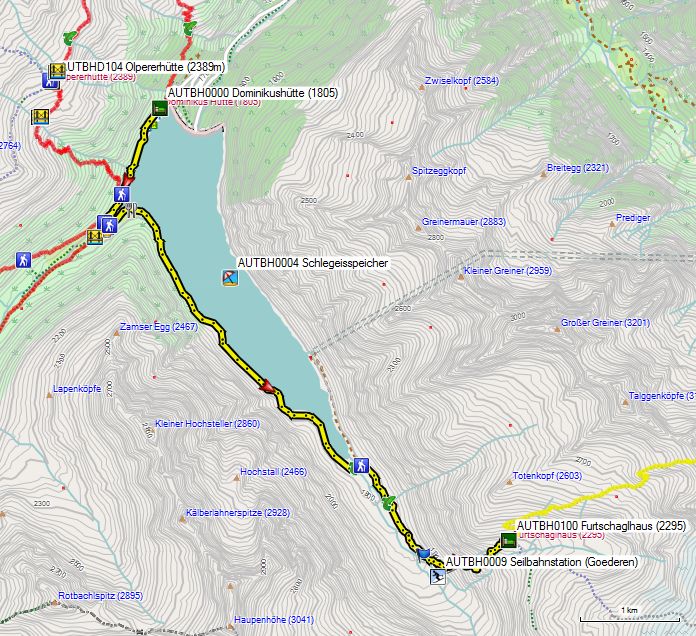 Vanaf hier verloopt de afdaling verder probleemloos tot aan de parking van het stuwmeer en de Dominikushütte.