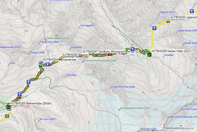 Hoger zal je uiteindelijk betere aanduidingen vinden richting Gerlossteinwand en uiteindelijk Kotahornalm (AUTBHC109). De Karalmhütte (AUTBHC110) is heel erg klein. Je zal er dus hoofdzakelijk buiten moeten zitten. Bij slecht weer kan je misschien beter halt houden in de eerste hut.