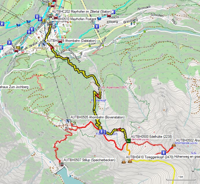 2) De iets langer mogelijkheid is eerst afdalen in de richting van de Ahornbahn (AUTBH0505), maar dan de afslag nemen in de richting van de Filzenalm en dan verder afdalen richting Stilluppspeicher (AUTBH0507 – stuwmeer) Vanaf hier kan je zoals hoger vermeld in het seizoen per bus afdalen. Reken op anderhalf tot twee uur tot aan het stuwmeer.