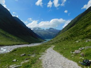 Vooreerst is de hier voorgestelde dagwandeling een lange toch. De horizontale afstand is groot en het hoogteverschil bedraagt 1300m. De gemakkelijkste manier om het voor jezelf iets lichter te maken is dat je de tocht in omgekeerde richting maakt en daarbij de bus neemt vanaf het treinstation of het postgebouw in Mayrhofen richting Dominikushütte en Schlegeisspeicher of enkel tot Ginzling (rijdt vroeger en later (www.postbus.at)) en afstapt aan de eerste halte voorbij de tunnel, zijnde Gasthof Karlsteg (AUTBHC210 – 897m). Op die manier heb je al ruim 250 m hoogte gewonnen, maar heb je vooral een redelijke horizontale afstand afgelegd.