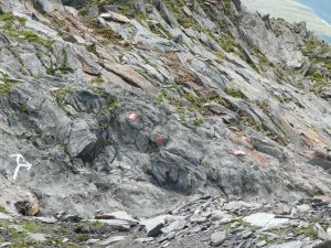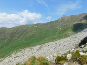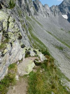 Het tweede deel bestaat uit, een smal paadje dat geleidelijk klimt in een zeer steile grashellingen van soms 70°. Normaal is dit geen probleem, maar het is niet de bedoeling dat je hier je aandacht laat verslappen, ondanks de zware tocht die je er reeds op zitten hebt. Eenmaal boven volgt nog een lang horizontaal stuk in de flank tot aan de laatste graad (AUTBH0409). Reken op anderhalf uur voor de laatste kom.