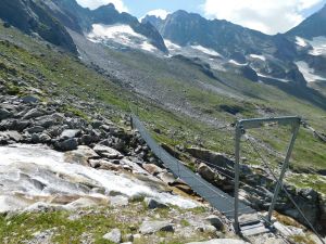 Je vind nog wat kabel voor het eerste stukje van de afdaling,maar daarna volgt een klassiek soms steil bergpad. Reken op nog een klein half uur tot aan de Edelhütte (AUTBH0500).