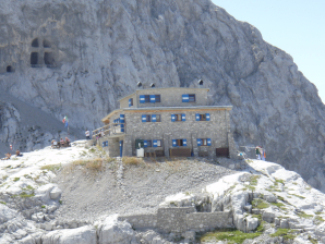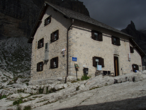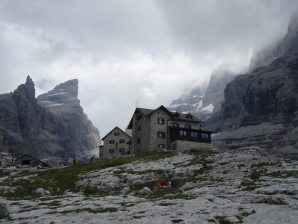 De Rifugio Tuckett is prachtig gelegen. Wie op lager slaapt, slaapt in het bijgebouw, de Rifugio Q. Sella.