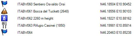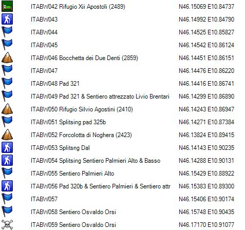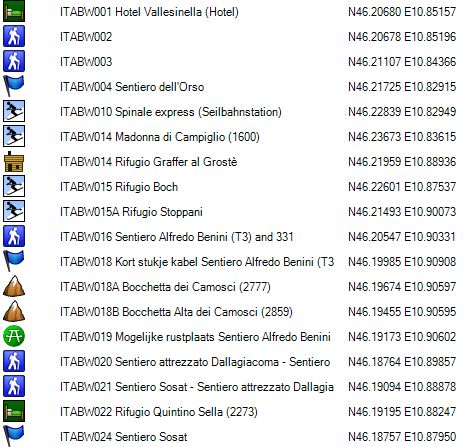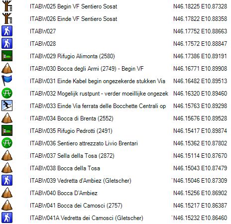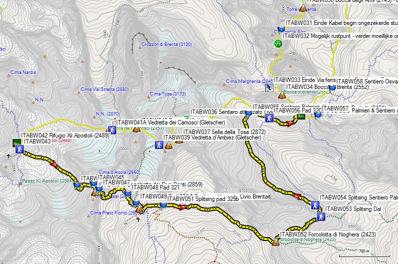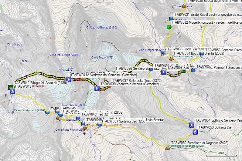 GPS 020 is de splitsing met de route over de Vedretta die Brenta Inferiore, naar de Bocca di Tuckett. Opgelet: deze route over de gletsjer is vrij steil en in de afdaling enkel aan te raden indien men in het bezit is van een ijspickel.