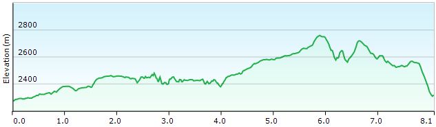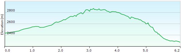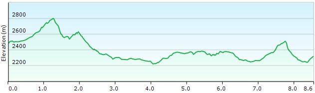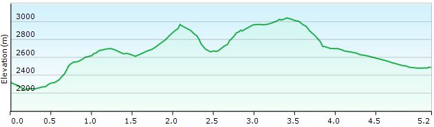 De hut verlaat je via de jeepweg om in een haarspeldbocht bij GPS 51 verder te gaan in dezelfde richting via een pad. Het pad verloopt rustig. Enkel bij de beddingen van droge rivieren gaat het wat moeilijker, net als onder de top van de Passo Forcolatta (GPS 52). Net voorbij deze pas vind je een splitsing, waarbij je het pad naar het dal als zeer vaag mag beschouwen. Je loopt nu door een zone met wat gras, maar zonder koeien tot waar de helling abrupt eindigt en je letterlijk om het hoekje gaat. Vanaf dit punt kan je bij helder weer reeds de Refugio Pedrotti zien liggen. De situatie op de kaart stemt hier niet helemaal overeen met de werkelijkheid. Bij GPS 053 vind je een gemarkeerd pad naar het dal en pas bij GPS 54 vind je de splitsing tussen de Palmieri Alto en Bassa. Bij de Bassa dien je veel meer meters af te dalen om die vervolgens weer te winnen. De Alto tracht meer op gelijke hoogte te blijven en verloopt daardoor wat rommelig Alles is wel goed aangeduid en hier en daar vind je wat kabelzekeringen. Het pad loopt door tot in de kom onder de Cima Tosa en Margherita (GPS 055). Bij GPS 056 kom je terug op het pad van de Bocca di Tossa om alzo terug te klimmen naar de Refugio Pedrotti-Tosa (GPS 035) (3u vanaf Agostini)