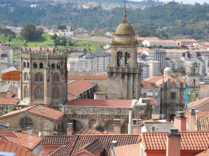 Je daalt eerst af via de Rua Ponte Do Sar en vervolgens klim je via de Rua de Sar (om het eenvoudig te houden ;-)), Rua do Castro de Ouro en de Patio de Madres tot de binnenring van Santiago. Deze dwars je en vervolgens ga je door de Rúa de Mazarelos, de Praza de Mazarelos, Praza Da Universidade, naar links via de Travesa Da Universidade en naar rechts in de Rúa Caldeirería (winkelstraat). Op het einde hiervan vind je een pijltje met Pilgrims Office. Hier daal je af naar links en op een tweesprong, ga je naar links. Wanneer je weer vlak staat ga je naar links in de Rua do Villar (toeristische winkelstraat).