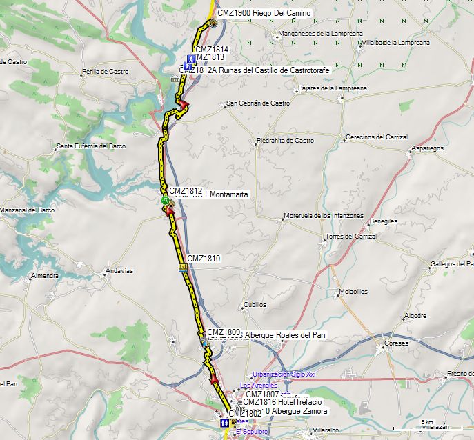 - Markering van het pad: wisselend per provincie. Weinig feitelijke problemen. Enkel in de kleine stadjes durven de pijlen ontbreken. De GPS tracklog biedt dan uitsluitsel.