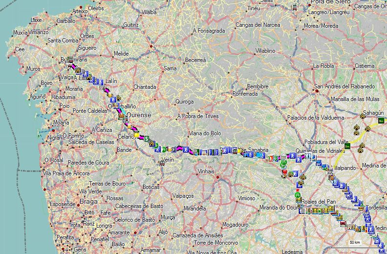 Traject: Benavente (Sureste) / Zamora (Via de la Plata) – Ourense – Santiago de Compostela (360/420km)