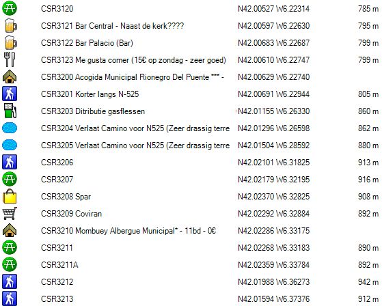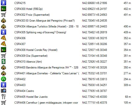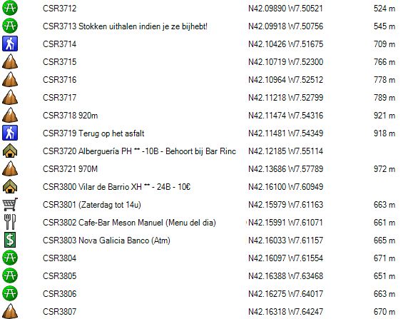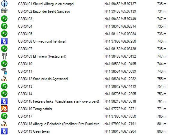 - Markering van het pad: veel verbeterd dan vroeger. Weinig feitelijke problemen. Enkel in de kleine stadjes durven de pijlen ontbreken. De GPS tracklog biedt dan uitsluitsel.