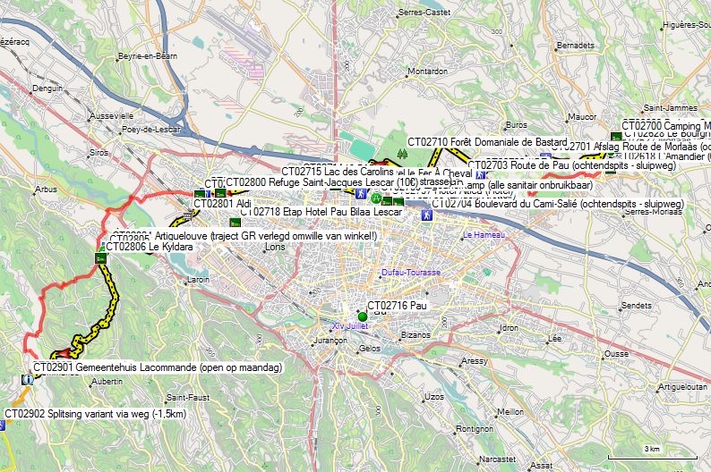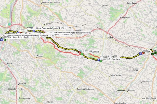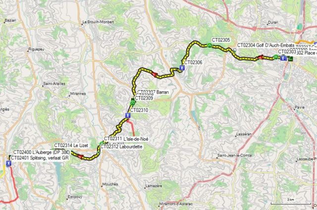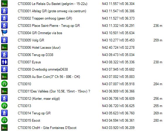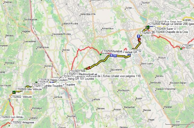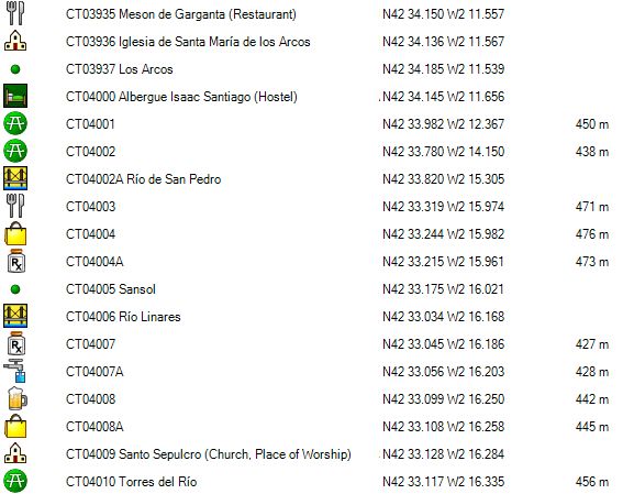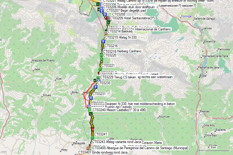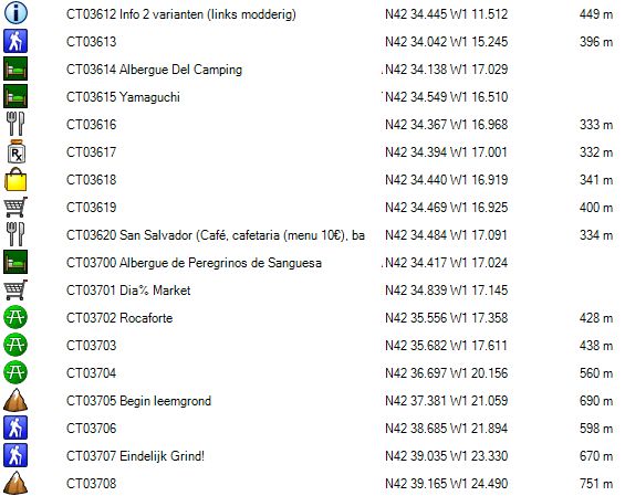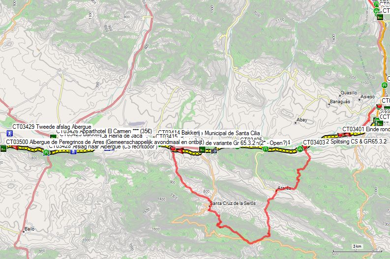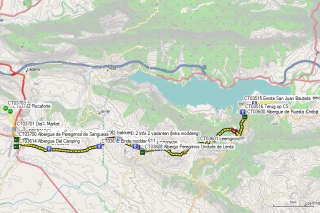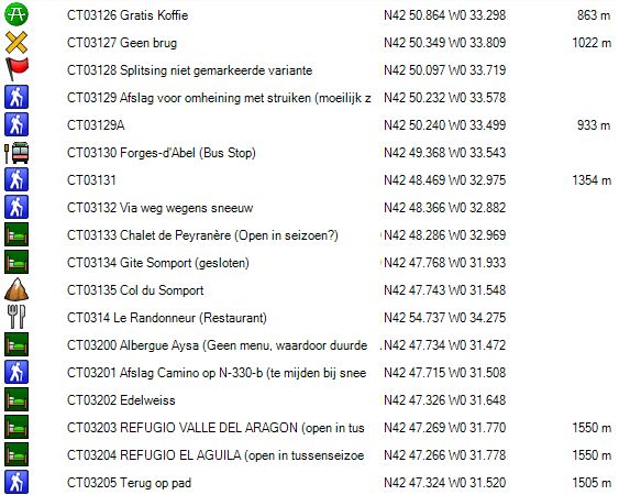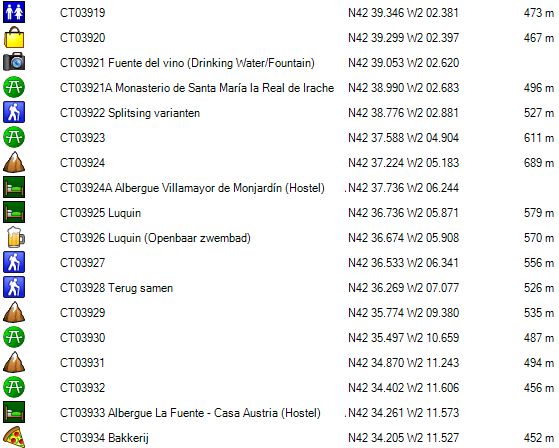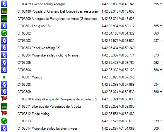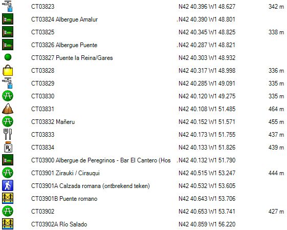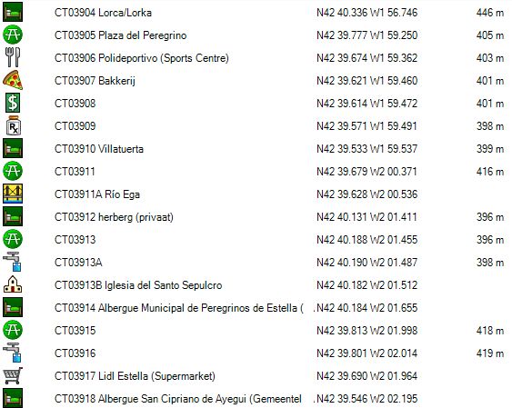 Zoals vermeld, waren de meeste andere pelgrims die ik ontmoette op dit deel van de Via Tolosana ouder dan mezelf. Alweer was ik de enige die met een GPS onderweg was. De resultaten heb ik ’s avonds zelf kunnen beluisteren: er moet maar één teken ontbreken en je kan verkeerd lopen… In dit geval, maakte ik de tracklog zelf aan op basis van de topogids van de GR653, in combinatie met de kaarten van www.freizeitkarte-osm.de , wat een vrij betrouwbaar resultaat opleverde en waardoor ik op het terrein maar eventjes de GPS diende te checken indien er te lang geen tekens meer aan te treffen was. Bovendien kan je met een GPS sneller terugkeren naar de vooropgestelde route. Dat spaart tijd en zorgt voor minder stress… Ik ben een fan.