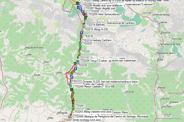 - Vanaf Jaca tot Puenta la Reina: hoofdzakelijk door riviervalleien.