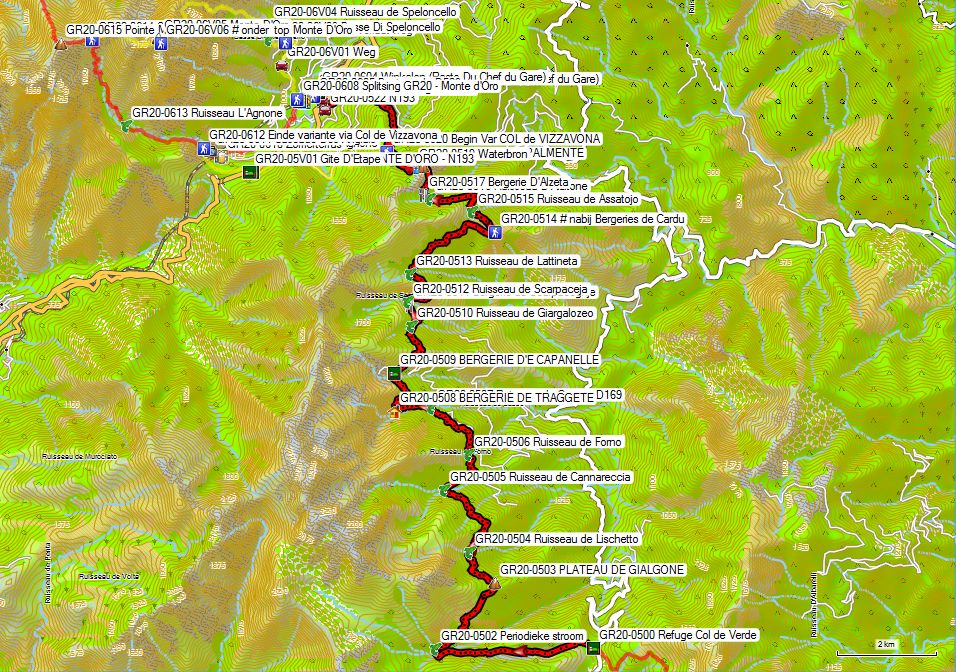Note: Due to the fact that I had lost a day on day 3 by staying overnight at I PEDINIEDDI (GR20-0302), I had to catch up a day again to reach Calenzana on foot in time. In that case it is easier to use the Tra Mare e Monti trail for those walking in the south to north direction, due to the fact that you can reach Calenzana in one day compared with the one and a half to two days needed over the GR 20. Hence the following description: