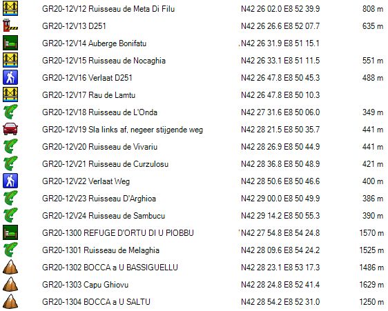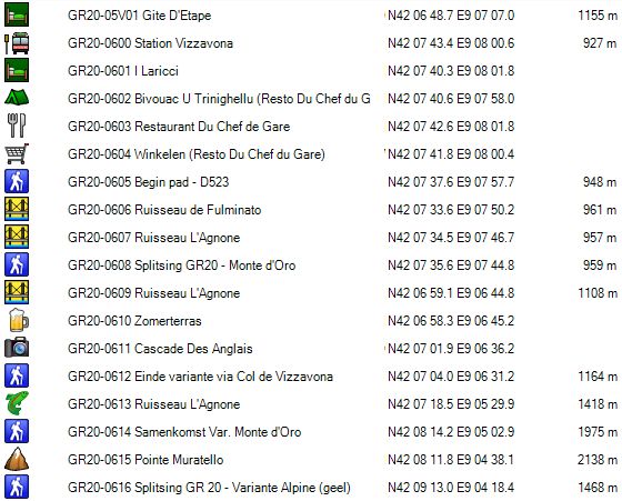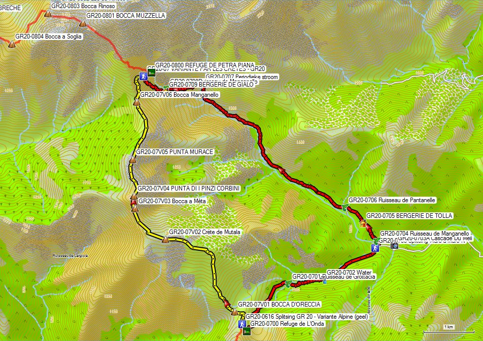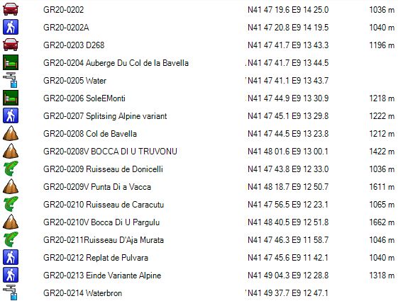 - Note 1: The entire GR 20 can be found on Garmin’s City Navigator. The trail is not identified as such, but just indicated as unpaved road. By comparison with topographic maps you’ll figure it out (see also maps further down in the article).