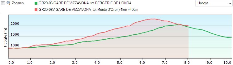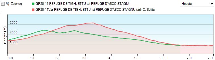 Hikers who chooses the GR20 and walk it in the south-north direction, can double up certain stages in good weather. To triple stages seems risky business and in emergency situations a choice for the Tra Mare e Monti trail is to be advised.