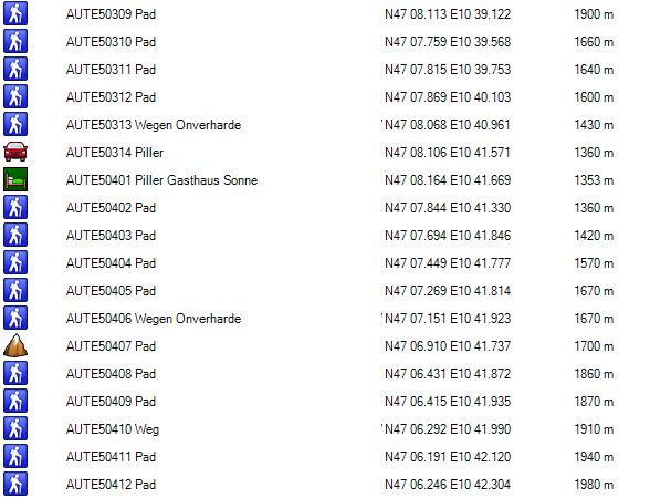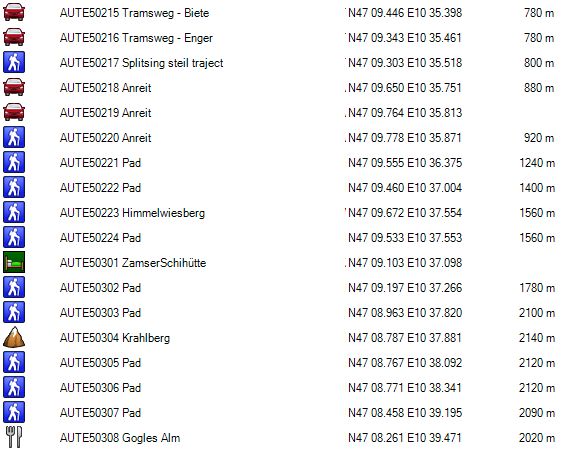 Stafkaart: enkel de getekende kaarten in het gidsje en de digitale kaarten via Freizeitkarte-osm samen met een Garmin GPSMAP. Dit toestel kan 10.000 Tracklog points opslaan.