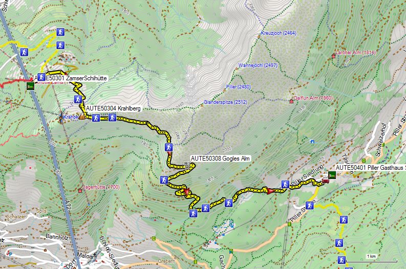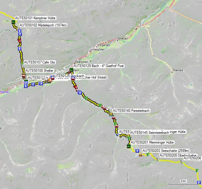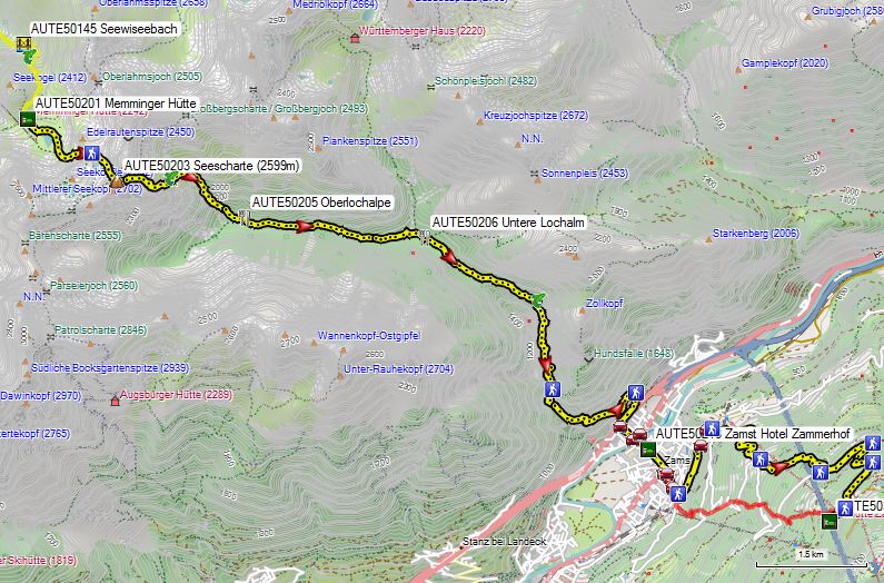 Daar waar München – Venetië ontworpen werd als een landschappelijk Droompad met als gevolg daarvan technisch moeilijkere passages, is de E5 bedoeld als technisch eenvoudige overtocht van de Alpen. Dit klopt ook in grote mate voor wie het traject tussen Zamst en Mittelberg met de bus aflegt (of te voet door het dal voor de puristen 🙂 ).