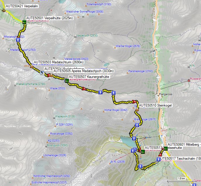 Technisch minder moeilijk, behalve Aperen Madatschjoch – Mittelberg (kan met bus vermeden worden).