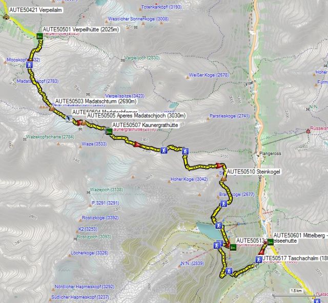Wie reeds problemen ondervindt in de afdaling van het Aperen Madatschjoch, dient aan het Karlesegg rechtstreeks naar het dal af te dalen naar Plangeross en vandaar de bus te nemen naar Mittelberg. In de gids wordt namelijk de Cottbuser Höhenweg beschreven en daar zit een Klettersteigpassage in, die technisch niet in goede toestand is.
