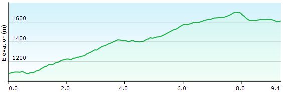 Je verlaat de herberg en klimt via de stijgende zijweg richting Rifugio Campogrosso. Je verlaat de weg in een bocht naar rechts via een pad dat links de flank ingaat. Eerst loop je zigzag door een weide. Dan loop je richting bos en in het bos gaat het opnieuw zigzag omhoog door het bos tot aan een zadeltje naast de Monte Cornetto (Seletta Nord-Ovest 1585m) (45’). De klim is heel slecht voor je achillespezen.