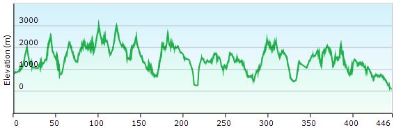 Ondanks deze ingrepen is de tocht toch nog goed voor 23.600 hoogtemeters op en af. Dit is ongeveer evenveel als de 23.000 hoogtemeters van München – Venetië (zonder kabelbaan of bus).