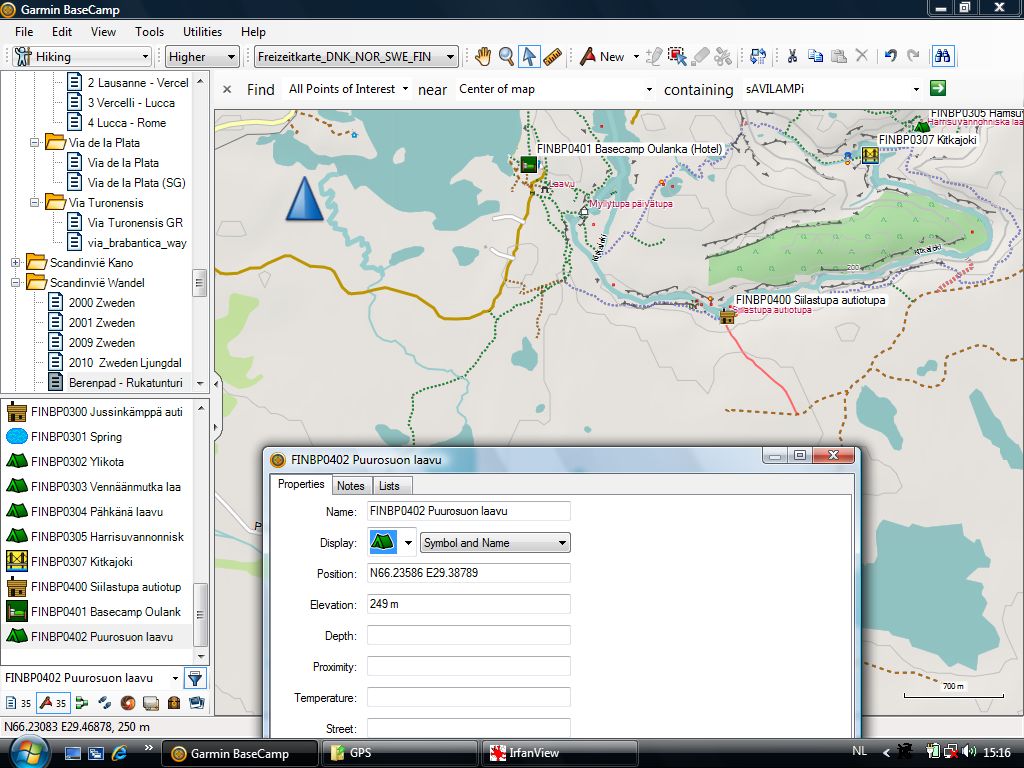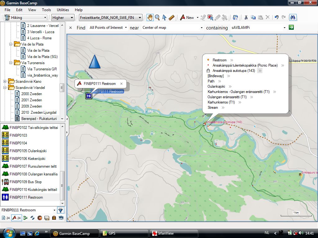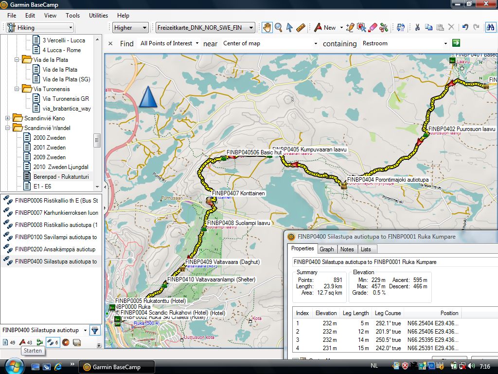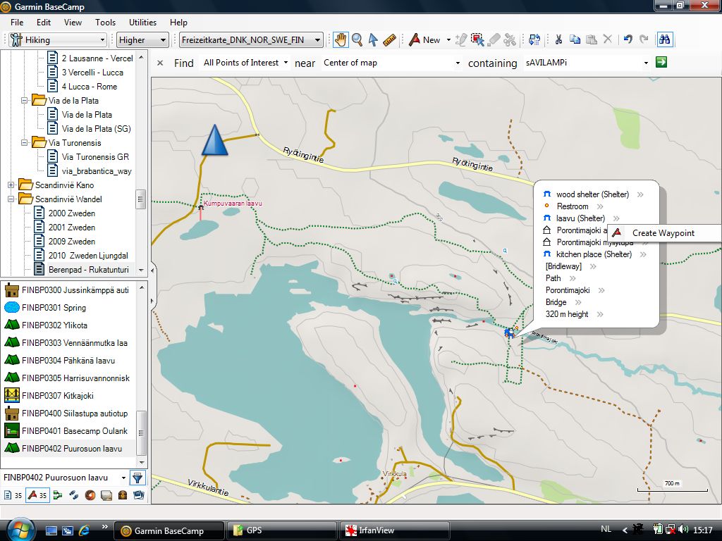 In de afdaling naar Ruka vind je ook nog een “Shelter”, die niet nader omschreven is. En daarmee ben je rond met je zoektocht naar de belangrijkste referentiepunten op deze tocht. Nu kan je beginnen met het aanmaken van de routes tussen de door jou gekozen waypoints.