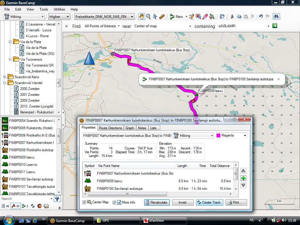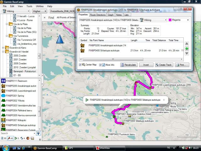 Je voegt dit punt toe, waarbij BaseCamp dit punt automatisch als nieuw eindpunt beschouwt. Met de pijltjes beweeg je dit punt naar de gewenste positie, waarna je op “herberekenen/recalculate” drukt.