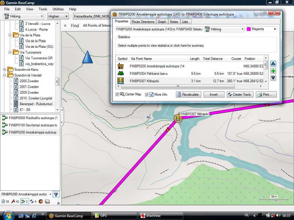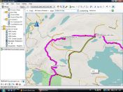Deze keer kiezen we voor de brug over de Kitkajoki rivier. Vervolgens brengen we dit punt met behulp van de pijlen op de gewenste logische positie in de route, waarna we een herberekening (Recalculate) uitvoer.