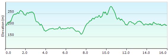 De totale afstand is 16,0 km.