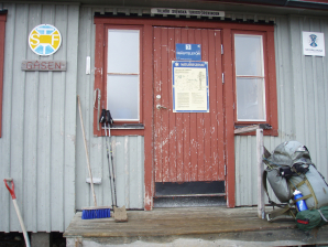 Ik heb er eventjes mijn hoofd binnen gestoken om te kijken naar de weersvoorspellingen (rechts voorbij de tweede deur) en het viel mij op hoe stil het er was. Men verwachtte 9 gasten, voor een hut met een capaciteit van 60. Misschien beginnen de Zweden ook wat meer op de kleintjes te letten en moeten ze daar bij STF hun beleid nog aan aanpassen.