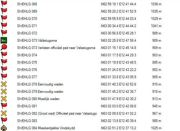 Wat verder kom je aan de hutten van Helags (GPS 050) (2u, tot 3³/4u). Ondanks dat ze er uitzien als ongeveer alle ander hutten van de STF, maar dan groter, is dit de duurste van alle hutten eigendom van STF (ca. 50€ – 2024). Waarom deze hut zoveel duurder is dan b.v. Sylarna is mij onbekend.