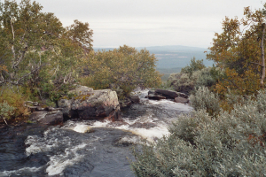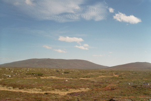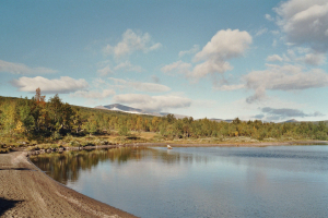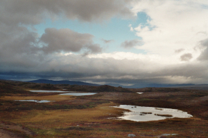 Gezien ik in het verleden nogal onprettige ervaringen gehad heb met sneeuw in de bergen (zie reisverslag Sarek) en ik speciaal naar dit gebied gekomen was om risico’s op sneeuw te verlagen, besloot ik iets warmere oorden op te zoeken, weg van de bergkam op de grens van Zweden en Noorwegen.
