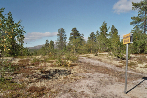 Gezien de bodem hier erg rotsachtig is, is het pad ook niet echt ingesleten. Tot aan de hut loop je min of meer evenwijdig met de rendieromheining en dan plots aan de oever van een meertje vind je eerst een droogtoilet en iets verder de hut Möllerbua (GPS 0400). De hut is eigendom van het staatsbosbeheer en is gratis. Je mag er niet langer dan 1 nacht blijven en moet alle andere bezoekers toelaten tot de hut.
