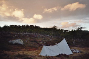 Ikzelf koos voor de half-open schuilhut aan het Stor-Tandsjön (GPS 0300). Hiertoe volg je het pad naar Käringsjövallen. Op het ogenblik dat het pad een aangeduide richtingsverandering naar links neemt (GPS 0207), volg jij het niet gemarkeerde maar zeer goed zichtbare pad tot aan het meer en de half-open schuilhut. Aan de hut is de grond vrij stenig, wat wat problematisch is als je geen tent hebt die kan opgezet worden zonder grondpennen. Enkel een plaatsje vlak tegen de schuilhut en de vuurhaard was wel geschikt voor een niet al te grote tent, maar dan kan je uiteraard geen vuur maken. Absolute rust verzekerd.
