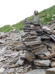 Het pad is goed gemarkeerd en stelt weinig problemen. Op de pas zul je echter tevergeefs naar een kruis zoeken.. een gemetste stenen zuil is alles wat er te vinden is.