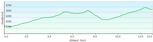 Initially, you follow the river, but at the height of a small waterfall you ward off to the right, to round the cliff area to the right of the waterfall. After the waterfall, you return to the vicinity of the river, but you remain above the bed. Further on, in early summer, you need to deal with a large snow field in the river gulley, which you can circumvent at best via the right flank. At the waypoint HRP 0196E you return to the path, after the snowfield in the river gully.