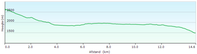 And so you follow at best the ridge over a length of 200 meter to the left. Then you descend over a number of natural “steps” in a bare landscape, until you arrive at waypoint HRP 0199A, where you return to the path after an outflanking movement.