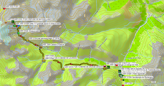 Note 2: In good weather, an early start is recommended, given that you can climb in the shadow of the mountain side up to the first pass (HRP 0204B COL DE CECIRE ). Trees will only be found from the Halte d’Artigues Ardoune (HRP 0204I) on. In Bagnères-de-Luchon, the thermometer indicated 38°C (which remains exceptional).