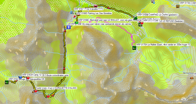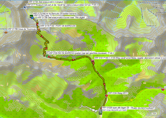 I recommend anyone to use a GPS in the Pyrenees, because you to count on the poor quality of the way marks and signpost in the field. In the Basque Country this has to do with the multitude of paths, the use of the Basque on signposts, the state of the signs in the field and errors in the GPS points stated by Ton Joosten. Outside the Basque Country, this has to do with the poor state of the way marks in the field, the lack of tracks in the snow and the already mentioned errors in the by Ton Joosten stated waypoints. The use of a GPS is therefore not absolutely necessary, but it saves time, energy and frustration. My Australian companion figured that out firsthand. I’m old enough to still be able to navigate without a GPS, but since the technology exists, I don’t see any reason not to use it. Normally, I don’t constantly look at my GPS , but in the Pyrenees this was more necessary than on the GTA. During those three weeks, I only once had to dig up my guide in the field, and that was because no path was indicated in that part of the OSM map and I could only make use of the raw original track log for that section.