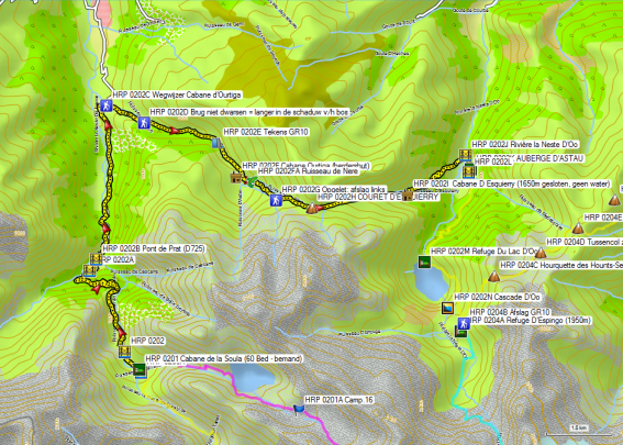 Luckily you can see the bridge over the Rivière la Neste d’Oo (HRP 0202J) from far away, so you know where to head to. You cross the bridge and turn to the right until you reach the AUBERGE D’ASTAU ( HRP 0202K ).