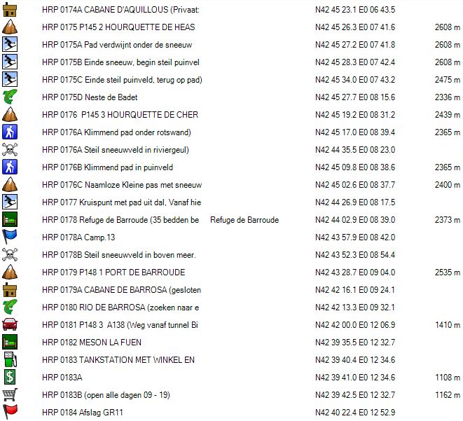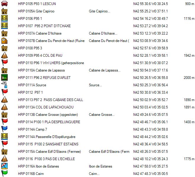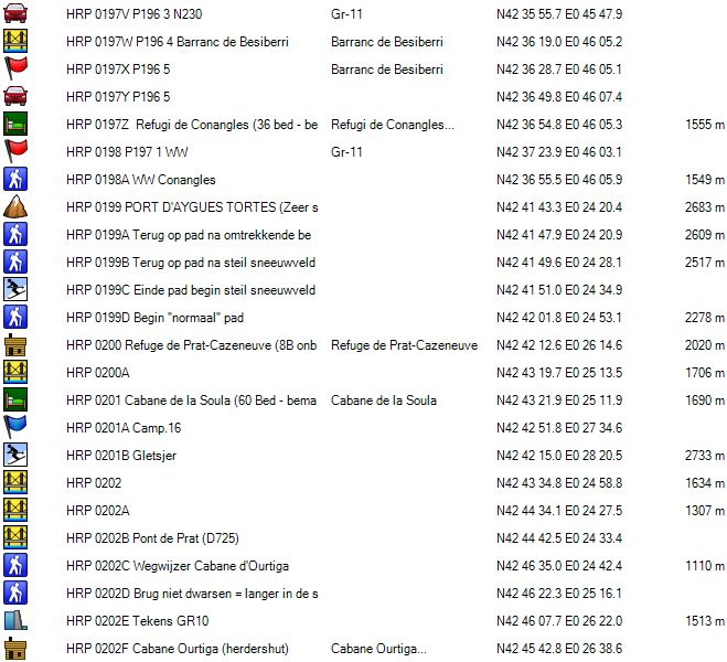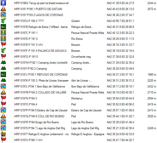 At the moment that I started planning this trip, in Belgium merely the Cicerone guide Pyrenean Haute Route Ton Joosten www.cicerone.co.uk (2009, reprinted in 2012 with updates, in English of course) was available. This guide contains approximately 500 GPS points (in UTM format, given the Spanish cards Rando Editions contain a UTM grid).