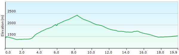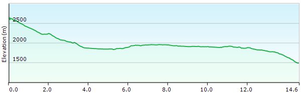 Je daalt af in de kom en passeert een bron, die enkel geschikt lijkt voor dieren. Vervolgens ga je naar links in de flank. Bij GPS HRP 0204F kom je onder een hoogspanningleiding terug op de graad, die je volgt via een grindweg richting Superbagnère.