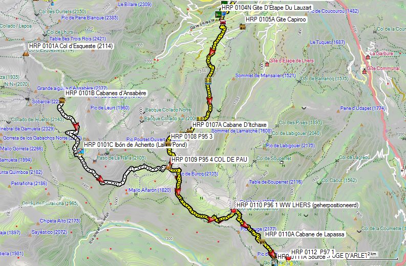 Op het ogenblik dat ik begon me de planning van deze reis, was in België enkel de Cicerone gids Pyrenean Haute Route van Ton Joosten www.cicerone.co.uk (2009 herdrukt in 2012 met updates, in het Engels uiteraard) beschikbaar. Op dit ogenblik betreft dit derde editie van april 2024, waarbij de auteur heden Tom Martens blijkt te zijn. Bij deze gids komt ook een GPX-bestand. Je moet enkel een account aanmaken en via Add Book aangeven dat je hun boek van de HRP kocht bij Amazon, waarna je het bestand kan downloaden. Het is een ZIP-bestand met veel submappen per dag. De kwaliteit is in orde voor beginners, maar het biedt enkel de hoofdroute zonder waypoints. Op basis van Freizeitkarten in combinatie met Garmin BaseCamp maak je tegenwoordig meer gedetaileerde tracklogs, die je bovendien zelf kan bijsturen inzake de gekozen route.
