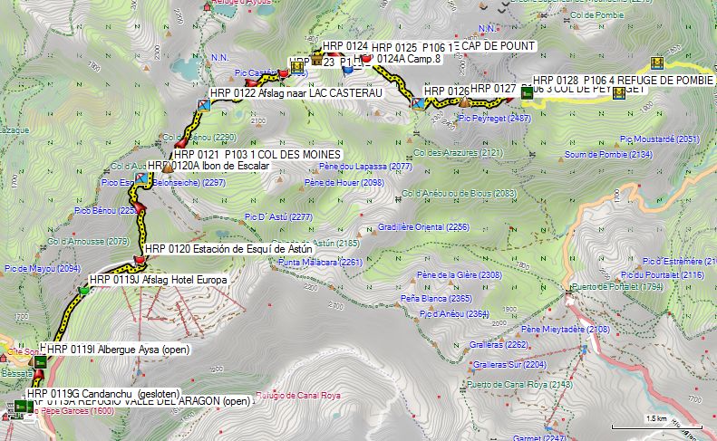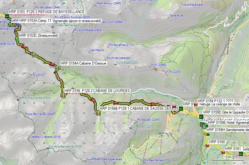Nota 2: Bij goed weer is een vroege start raadzaam, gezien je dan maximaal in de schaduw van de bergflank kan klimmen tot aan de eerste col (HRP 0204B COL DE CECIRE). Bomen vind je pas terug vanaf de Halte d’Artigues Ardoune (HRP 0204I ). In Bagnère de Luchon stond de thermometer op 38°C (jawel).