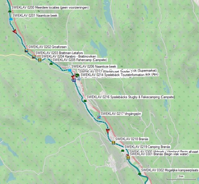 - deels gecommercialiseerd (er wordt een vergoeding van 25 SEK per kano gevraagd voor het gebruik van de kampeerplaatsen.)