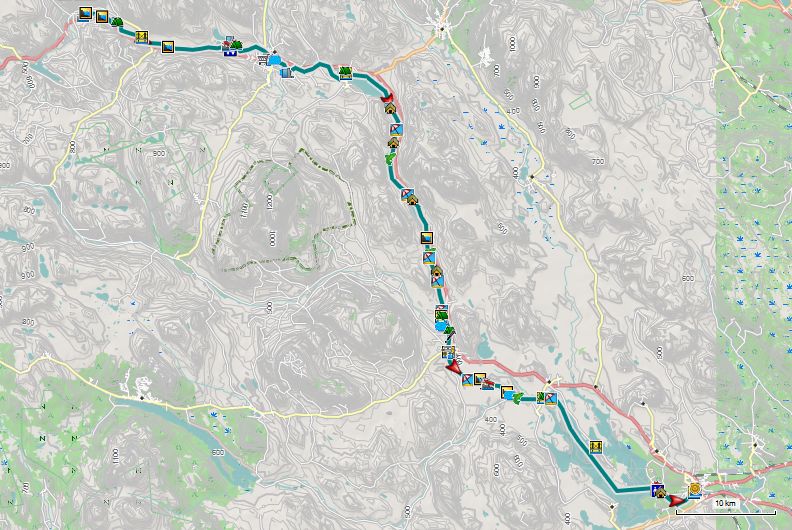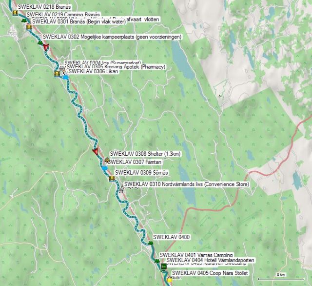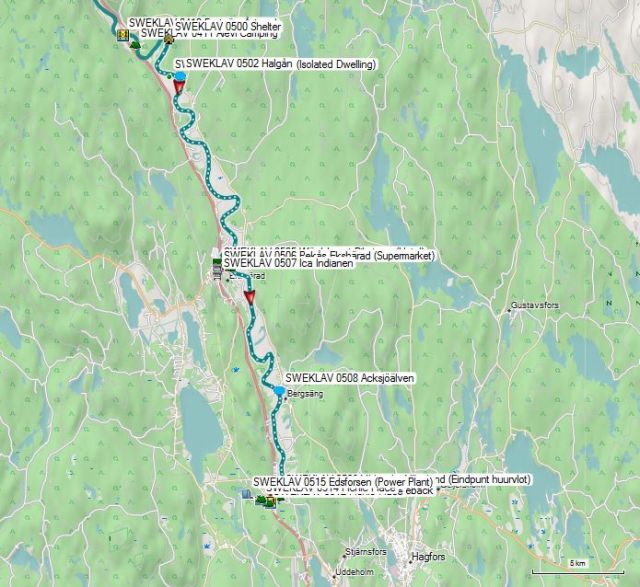 Het stuk tussen Helgasjön en Salen (meer) is zeer mooi, maar lastig vanwege de 7 overdraagplaatsen.