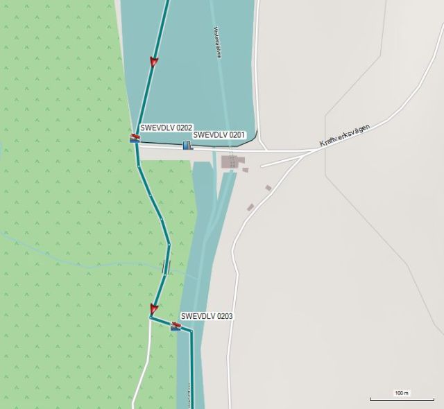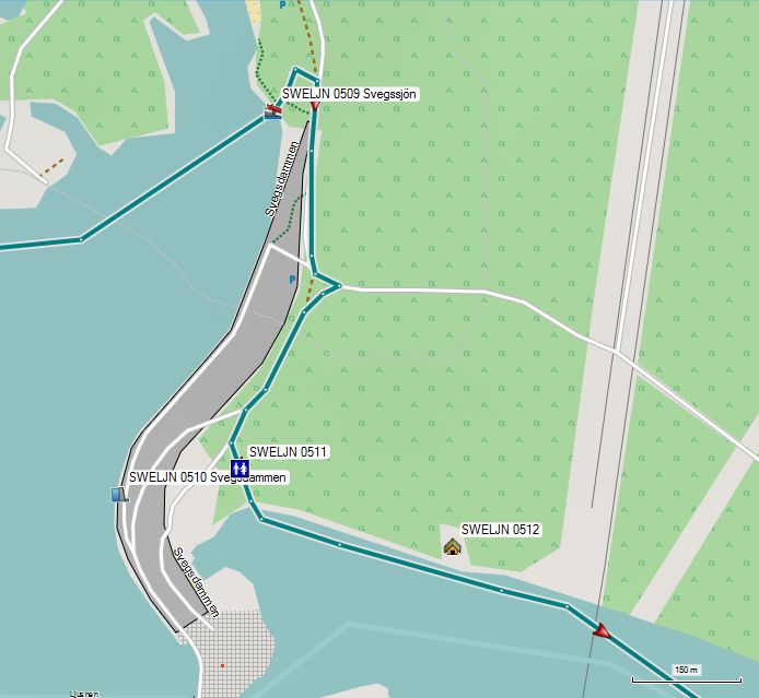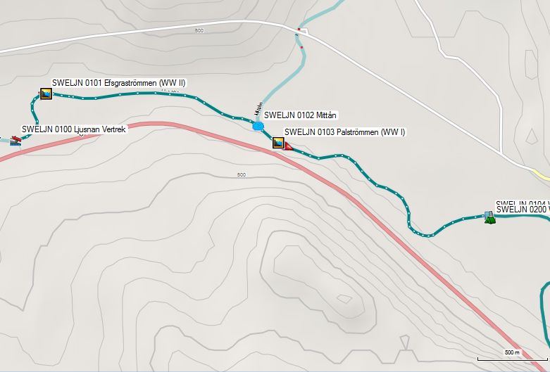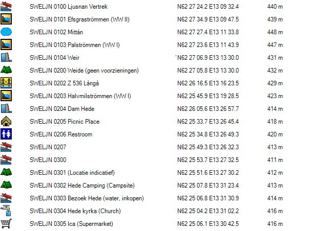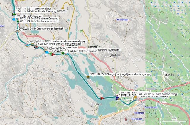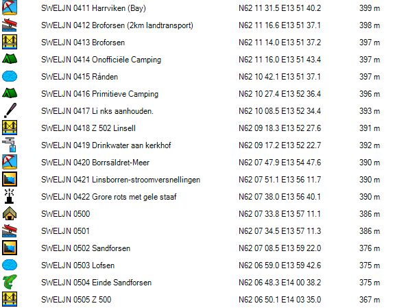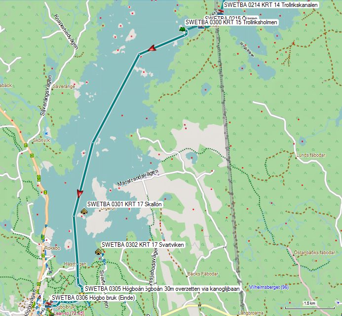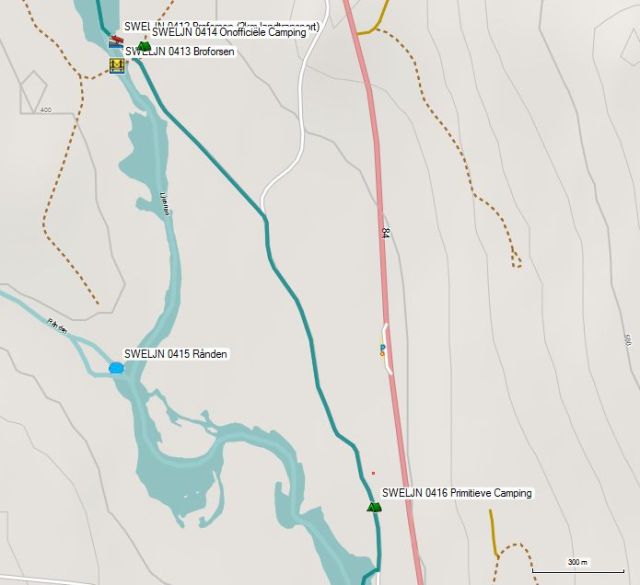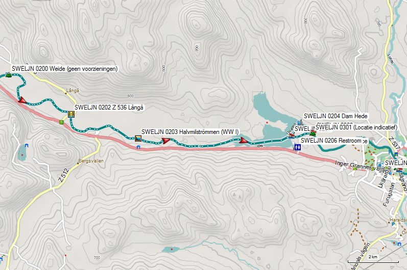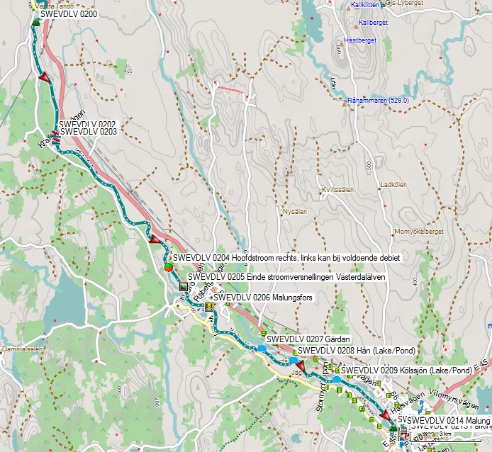 Het uitroepteken bij Söveringsgärden wijst ook op stroomversnellingen (licht WWI).