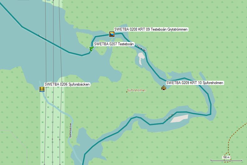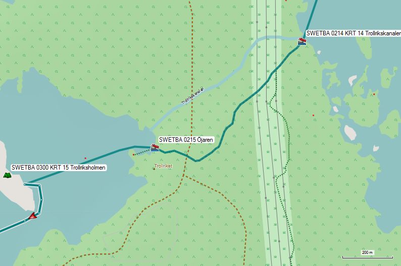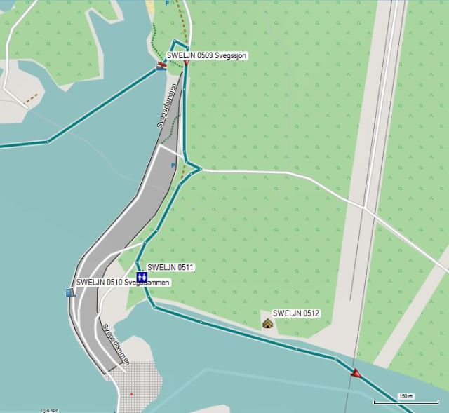 De eerste brug waar je onderdoor moet bij Torsö is vlot te vinden. Dit deel van de route tot het schiereiland Getnö is trouwens prachtig. De tweede brug is iets moeilijker te vinden omwille van de rietkragen. Gebruik je kaart, kompas en je gezond verstand. De oude spoorwegbedding waar je onderdoor moet ligt ca 2 meter boven de waterspiegel, dus….