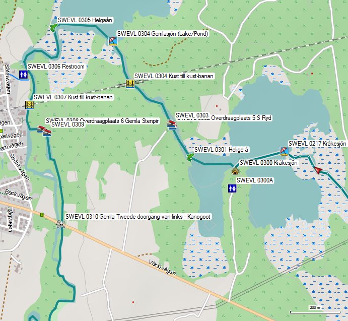 De route is beschreven in DKV4 en vermeld in Kanokamperen in Europa (Hollandia Watersport – Jan Eggens). Wend je voor de aanvang van de afvaart tot de toeristische dienst van Växjö. Daar is de kanokaart van deze route verkrijgbaar voor 80 SEK. Deze kaart is absoluut noodzakelijk voor de oriëntatie.